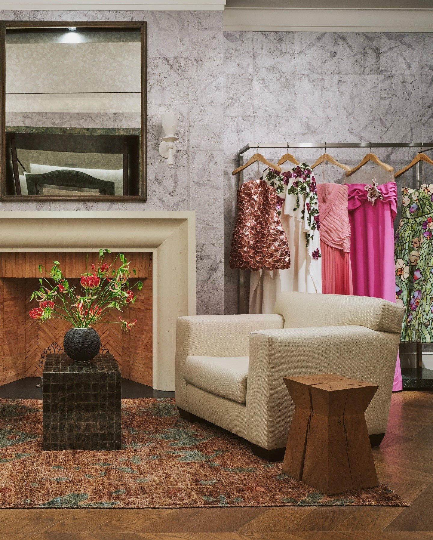 A capriccio of a grand Manhattan townhouse—inspired by the design ideas of Jean Michel Frank, Alberto Giacometti and Rosario Candela—the boutique offers an assortment of Ready-to-Wear, Handbags & Accessories, and Bridal.